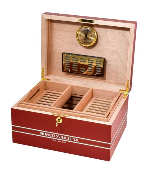 The Illustrious Collection Romeo y Julieta Lacquered Cigar Humidor is a meticulously crafted and highly limited-edition humidor designed to cater to the most discerning cigar aficionados. Here are some key features: